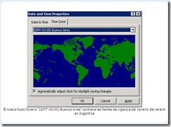 Actualmente, las computadoras en Argentina están configuradas según el huso horario “(GMT-03:00) Buenos Aires, Georgetown”. Sin embargo, los valores predeterminados para dicho huso horario “(GMT-03:00) Buenos Aires, Georgetown” no reflejan las fechas de inicio y culminación del horario para el período estival definidas por las Autoridades Nacionales según lo anteriormente señalado.